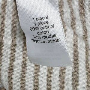 Comfy Maurices 24/7 striped short sleeve tee in tan and white. Made from a soft, breathable cotton-modal blend (60% cotton, 40% modal). Lightweight, relaxed fit — perfect for layering or everyday casual wear.
