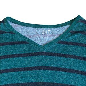 Maurices 24/7 Womens Striped V-Neck Blouse-Green-Size L-GUC