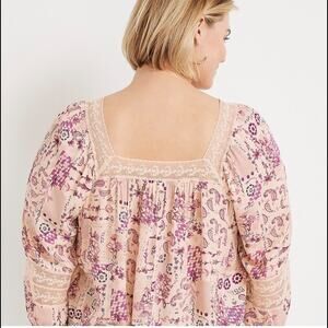 Maurices 2X Top Fall Blouse Boho Plus Size Shirt Peasant Flowy Lace Top Bohemian