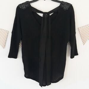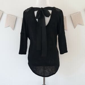 Maurices 3/4 Sleeve Black Tie Back Ribbon Bow Dressy Business Formal Shear Sweater Top