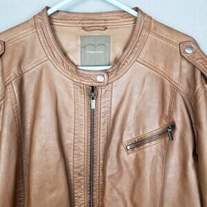 Maurices 4X Faux Leather Moto Jacket Carmel Brown Comfort Stretch Fall Staple