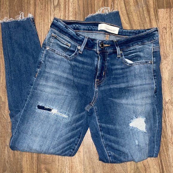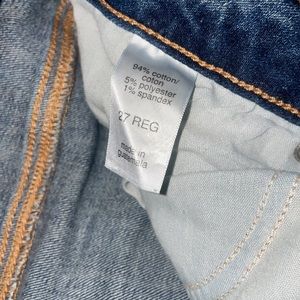 These jeans are in good pre owned condition. Has manufacturers distressing and no stains. Size: 27 regular