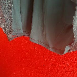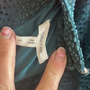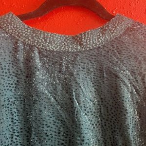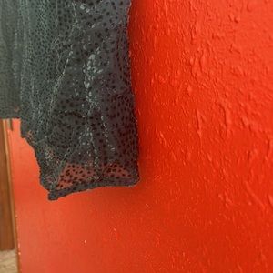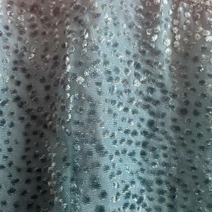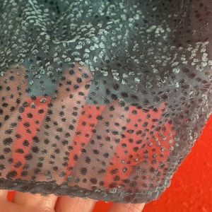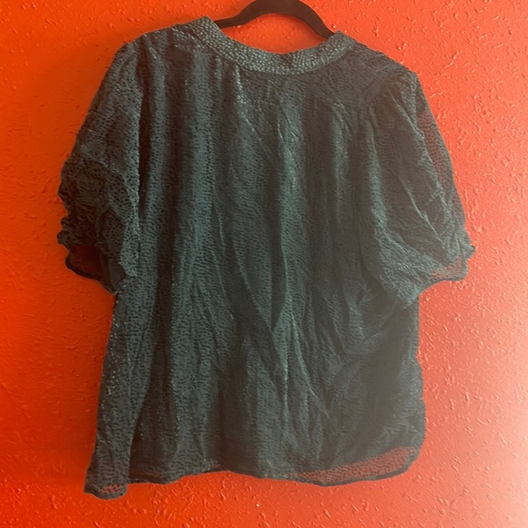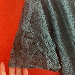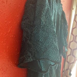Large Emerald green/teal Velvet Dot puffed sleeve/sheer sleeves High neckline Keyhole button back (2) Lined body