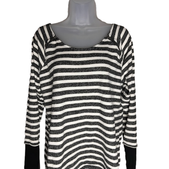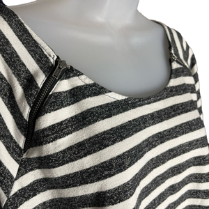 Maurices, black and white sweatshirt with long sleeves and working zipper detail at the shoulder