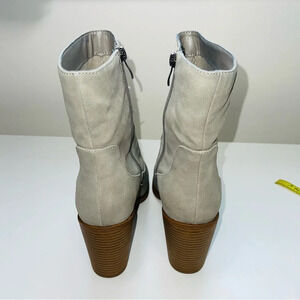 Maurices Addison taupe gray Mid Ankle Booties. In excellent condition! Almond toes. Mid ankle shaft. Inner side zip closure. 4” wood block heel. Exposed stitch details around the foot. Light taupe gray color. Size 7.