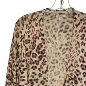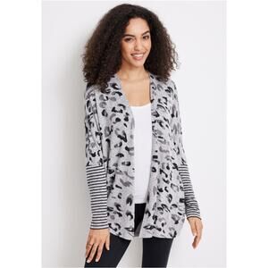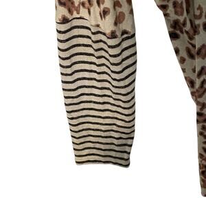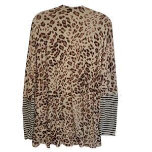 Maurices Animal Print Cardigan Womens Large Striped Sleeves Tan Leopard Topper