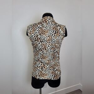 Very cute animal printed top by Maurices. Stretchy jersey knit material. High neckline with ruched waist for a flattering fit. Perfect for under a blazer or sweater. Excellent condition. Size XS measures approximately 25 inches long 16.5 inches underarm to underarm laid flat.