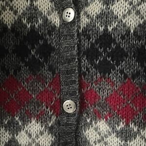 Maurices Argyle Button Down Cardigan in Gray, Burgundy / Wine, Black & White