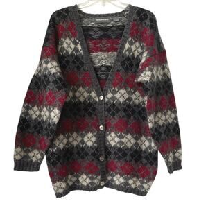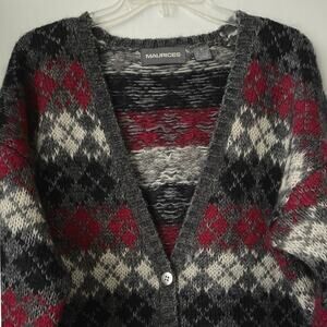 Maurices Argyle Button Cardigan Womens Size M Gray Mohair Blend Grandpa Cozy