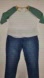 * white top with green sleeves & yellow neck trim