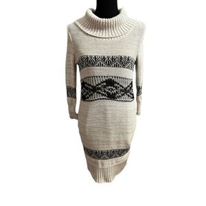 Maurices Beige & Black Knit Sweater Dress Cowl Neck Sz Medium Camisole lined EUC