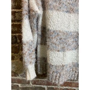 Maurice’s Beige/Cream Striped Fuzzy Knit Sweater, Lantern Sleeve, Women’s Size OX