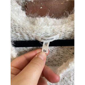 Maurices Beige/Cream Striped Fuzzy Knit Sweater, Lantern Sleeve, Women’s Size OX