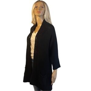 Maurices Black 3/4 Sleeve Open Front Cardigan with Sequin Details