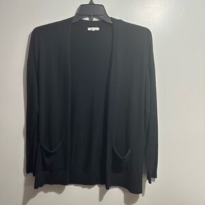 Classic black cardigan. Open front design. Soft and comfortable. Size: Large