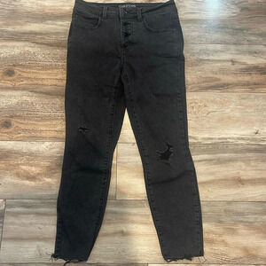 Maurice’s Black Distressed High Rise Jeans Cropped Size 6 Short Stretchy Buttons