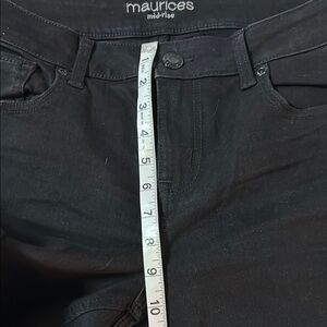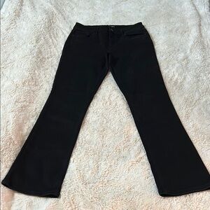 These black jeans from Maurices showcase a chic flare and wide leg style, perfect for adding a touch of elegance to your outfit. Made from durable denim, they offer both comfort and longevity. The solid black hue ensures they are a versatile addition to any wardrobe.