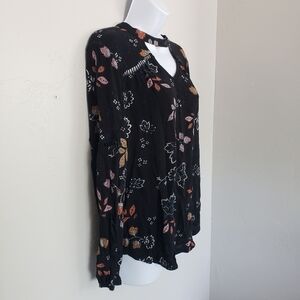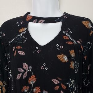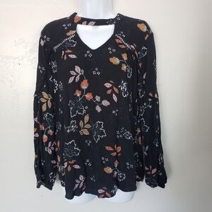 Maurices Black Floral Blouse Keyhole Neck Long Slv