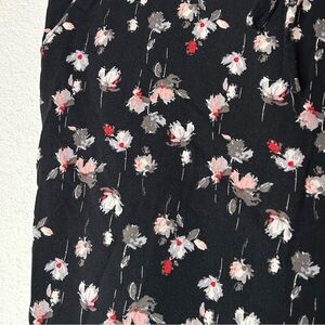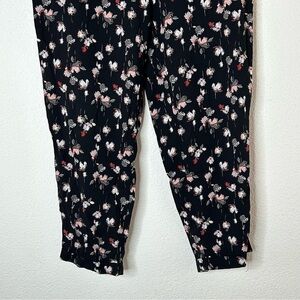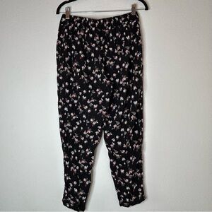 Maurices Black Floral Print Pants Women Size Medium in good cones/ stretchy at back/ front tie / has pockets/ non stretchy / folded hem/ perfect for any occasion