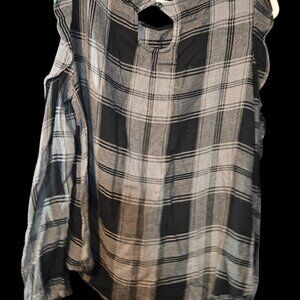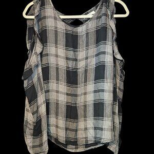 Maurices Black & Gray Plaid Cold Shoulder Top Size Large