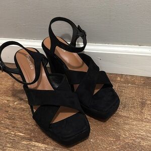 Maurice’s Black Heeled Crisscross Black Platform Heels