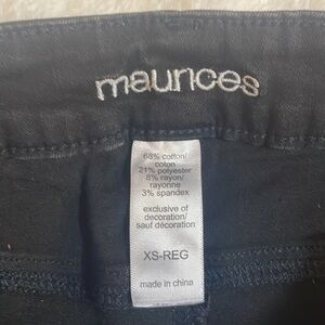 Maurices Black Jeggings Good condition with regular wear and some fading (pictured) Inseam measures approximately 31” Lots of stretch to these