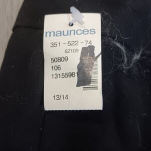 This elegant black pencil skirt from Maurices is designed for a sophisticated work look. Its knee-length cut and structured fabric provide a polished silhouette, making it a versatile choice for professional settings. The classic pencil style ensures a timeless appeal, perfect for pairing with various tops.