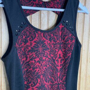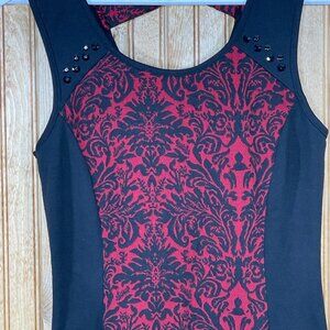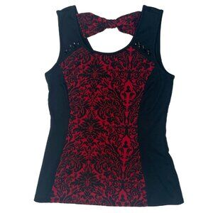 Maurices Black Red Rhinestone Bow Top Sleeveless Blouse Scroll Floral Small 4 6