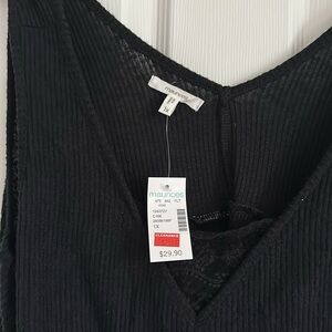 Chic black sleeveless top with a flattering V-neckline. Perfect for any occasion.