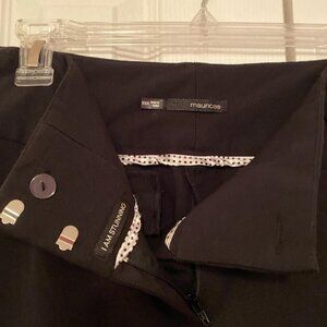 Maurice’s “I am stunning” black stretchy straight leg pants. False pockets. Medium/regular length. 10-year-old style, so sizing may be slightly different from modern Maurice’s styles.