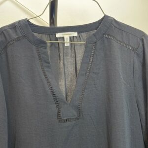 🅢🅐🅛🅔 Maurices Black Tunic Blouse Eyelet Detail Slit on sides V-Neckline