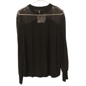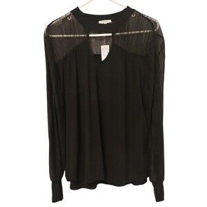 Black pullover top from Maurices. Size Xl. Black sheer sleeves and squared keyhole collar. Slight scoop bottom. See photos for approximate measurements and fabric tag.