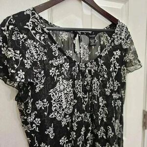 Maurice's Black White Flora Bohemian Flowy Womens Top Size XL
