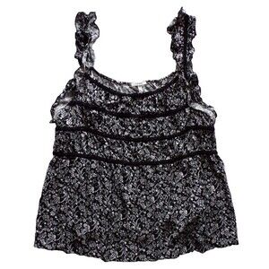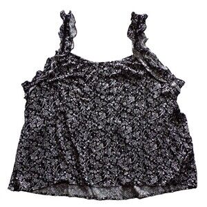 Embrace effortless style with Maurice's Black and White Paneled Tank Style Top, a chic addition to your wardrobe that doesn't compromise on comfort. In a plus size 2X, this tank top features a charming floral pattern. The round neckline and wide straps provide a comfortable, relaxed fit while adding a touch of elegance with its crochet accents and lightweight fabric. Crafted from soft, breathable rayon knit, this camisole is designed for all-day ease, whether you're out for a casual stroll or enjoying a relaxed day at home. The pullover closure ensures quick dressing, and the machine-washable garment is a hassle-free laundry addition. With its ruffled straps, this tank top combines simplicity with a playful, feminine edge.
