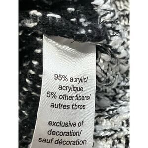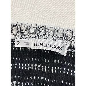 The Maurices Black & White Pullover Sweater in size 2 features a classic round neck and long sleeves, with a relaxed fit for a comfortable and casual look. Made from acrylic knit fabric, this sweater is machine washable for easy care. The black and white striped pattern and lace trim accents add a touch of style to this versatile piece, perfect for the fall and winter seasons. This sweater is designed for plus size women and is a colorful and fashionable addition to any wardrobe.