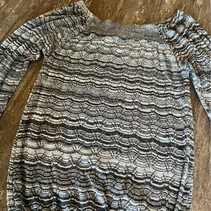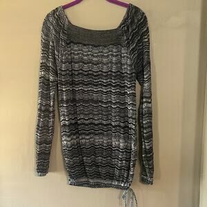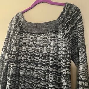 Maurices Black White Wavy Stripe Print Light Knit Sweater Tunic Top, Medium