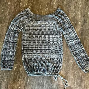 This Maurices knit sweater tunic blouse is perfect for adding a stylish touch to your wardrobe. It features a black and white wave pattern, long sleeves, and a drawstring detail at the hem, offering both comfort and elegance. Ideal for casual or office wear, this versatile piece is machine washable for easy care.