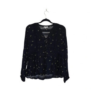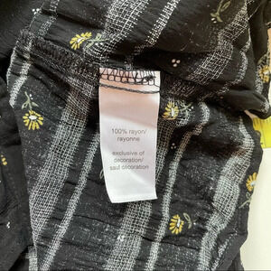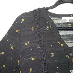 Maurices Black & Yellow Ditsy Floral Print Lace Popover Blouse Medium Women’s