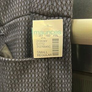 These Maurices trousers offer a sleek and versatile design, perfect for both casual and professional settings. Crafted in a blend of black and blue hues, they feature a comfortable fit with a streamlined silhouette. Ideal for pairing with various tops, these trousers are a wardrobe essential.