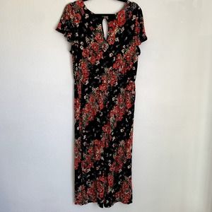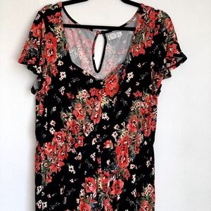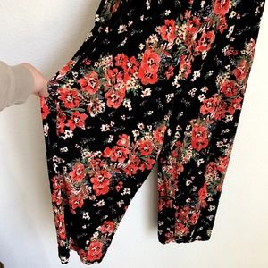 Stylish jumpsuit with floral pattern. Features short sleeves and a V-neckline. Perfect for casual outings.