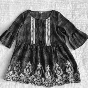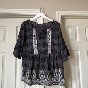 Maurices black and off-white top with embroidery detail on front.