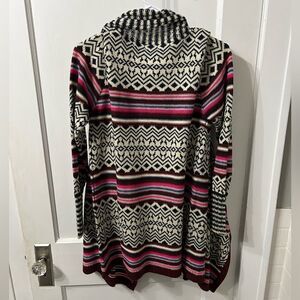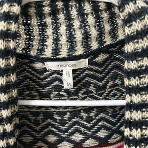 Embrace comfort and style with this Maurices cardigan, featuring a striking black and white color scheme. The open-front design with a shawl collar offers a relaxed fit, perfect for layering. Its geometric patterns and medium-weight knit make it an ideal choice for cooler weather.