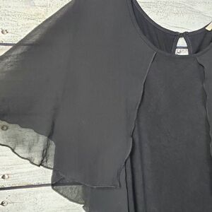 Maurices Black Flutter Sleeve Blouse L Women’s Dressy Keyhole Back Top Layered C