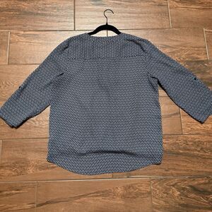 Maurices Blouse Blue White Flowy Surplice Criss Cross V-Neck Top Sz L
