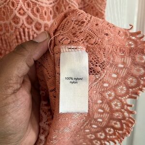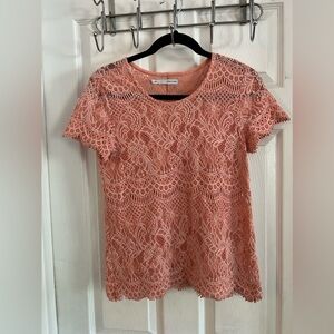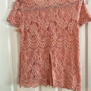 Maurice’s Blouse Medium Paisley Embroidered Lace Pink Back Split 100% Nylon
