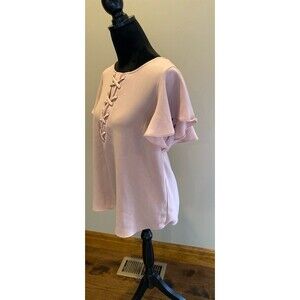 Maurice’s Blouse Plus Size XL Dusty Rose Pink Lace Up Front Flutter Sleeve