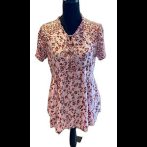 Maurice’s Blouse Sz Large Top Boho Peasant Look Lace Up Pockets Elastic Waist