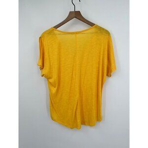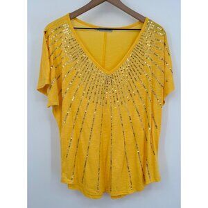 Maurices Blouse Women Large Yellow Silver Sequin Split Short Sleeve V-Neck