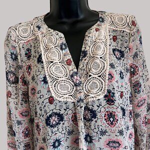 Maurices Blouse Women Small Boho Floral Crochet Tunic Top Cottage Feminine Sheer