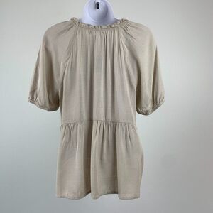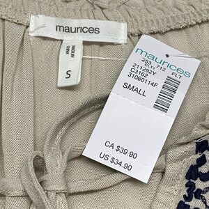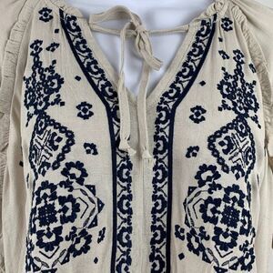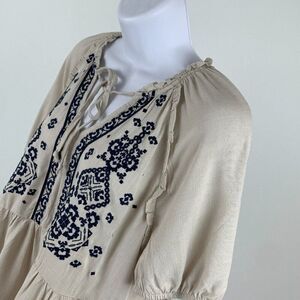 Maurices Blouse sz S Top Beige Navy Embroidered Boho Flowy New NWT